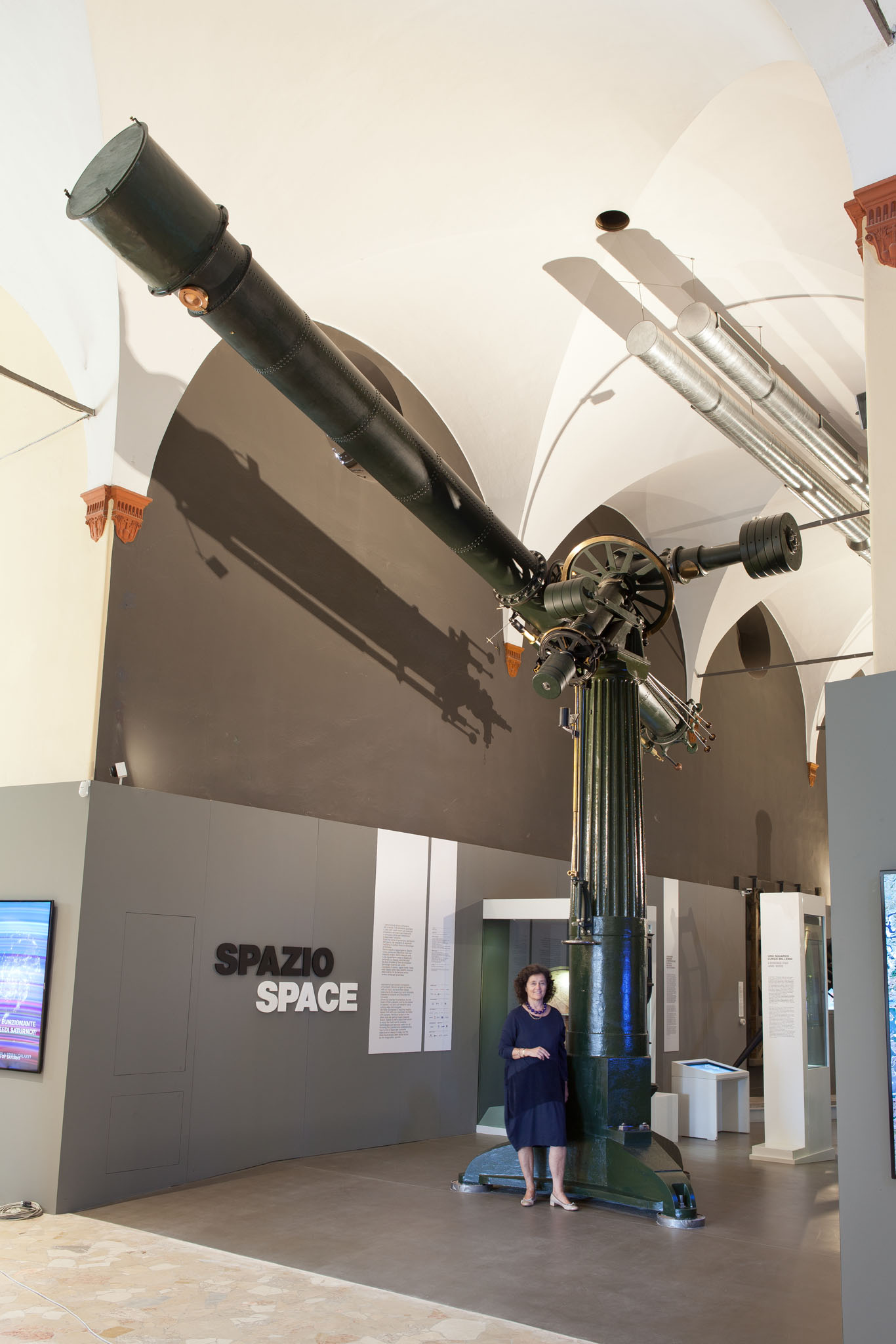 Il rifrattore Merz-Repsold da 18 pollici dopo il restauro, esposto nella galleria del Museo Nazionale della Scienza e della Tecnologia Leonardo da Vinci di Milano (settembre 2017).