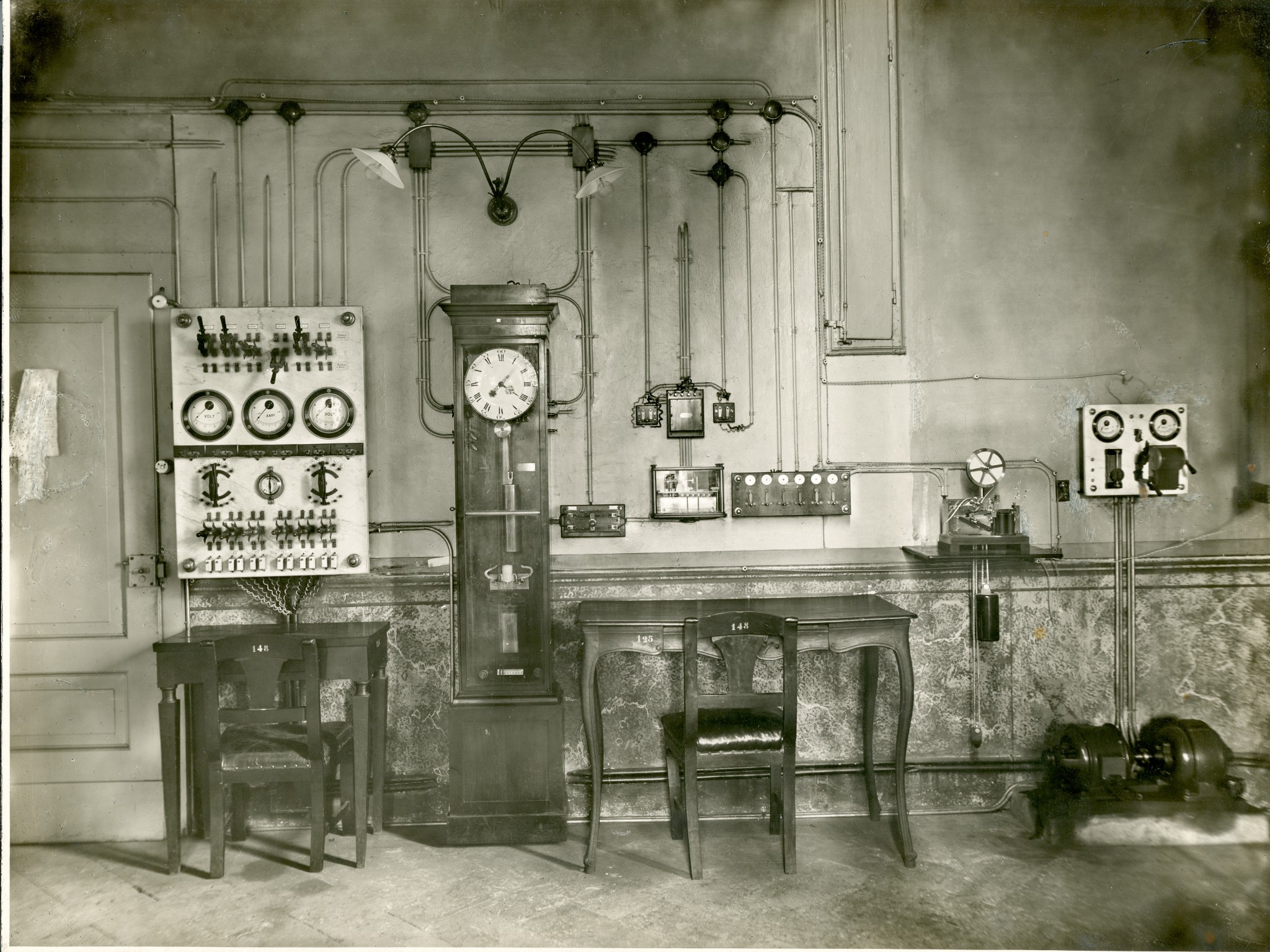 La stanza con i pendoli e le apparecchiature che comandavano la sirena che dava il segnale orario del mezzogiorno alla città di Milano. La sirena, installata nel 1923 sul tetto del palazzo della Rinascente in piazza del Duomo, era comandata attraverso un cavo elettrico proveniente dall'Osservatorio di Brera. Il sistema funzionò fino all'agosto del 1943, quando la stanza di controllo fu distrutta dai bombardamenti aerei che colpirono il Palazzo di Brera.
