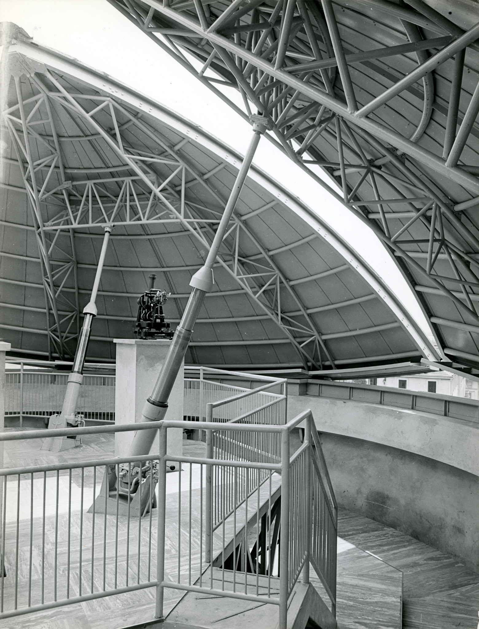 Veduta dell'interno della cupola a fiore, con tre dei quattro strumenti dei passaggi che vi erano installati. Lo strumento al centro è l'Askania AP 100 che fu acquistato in occasione dell'Anno Geofisico Internazionale (1957).