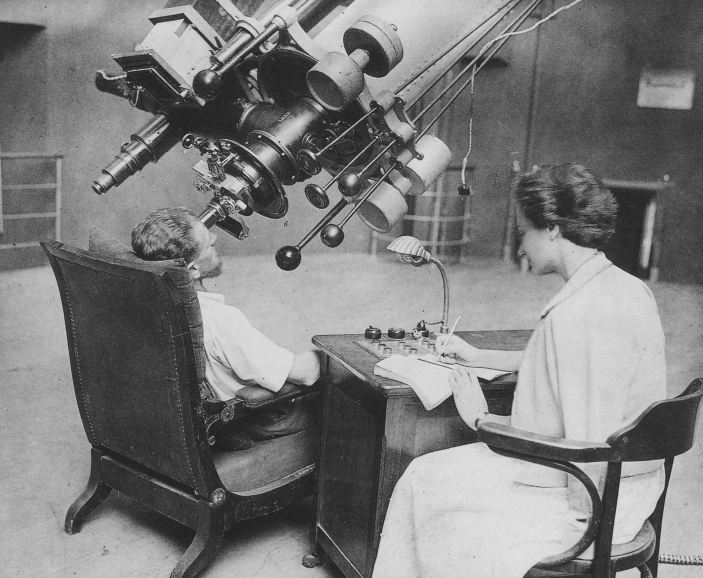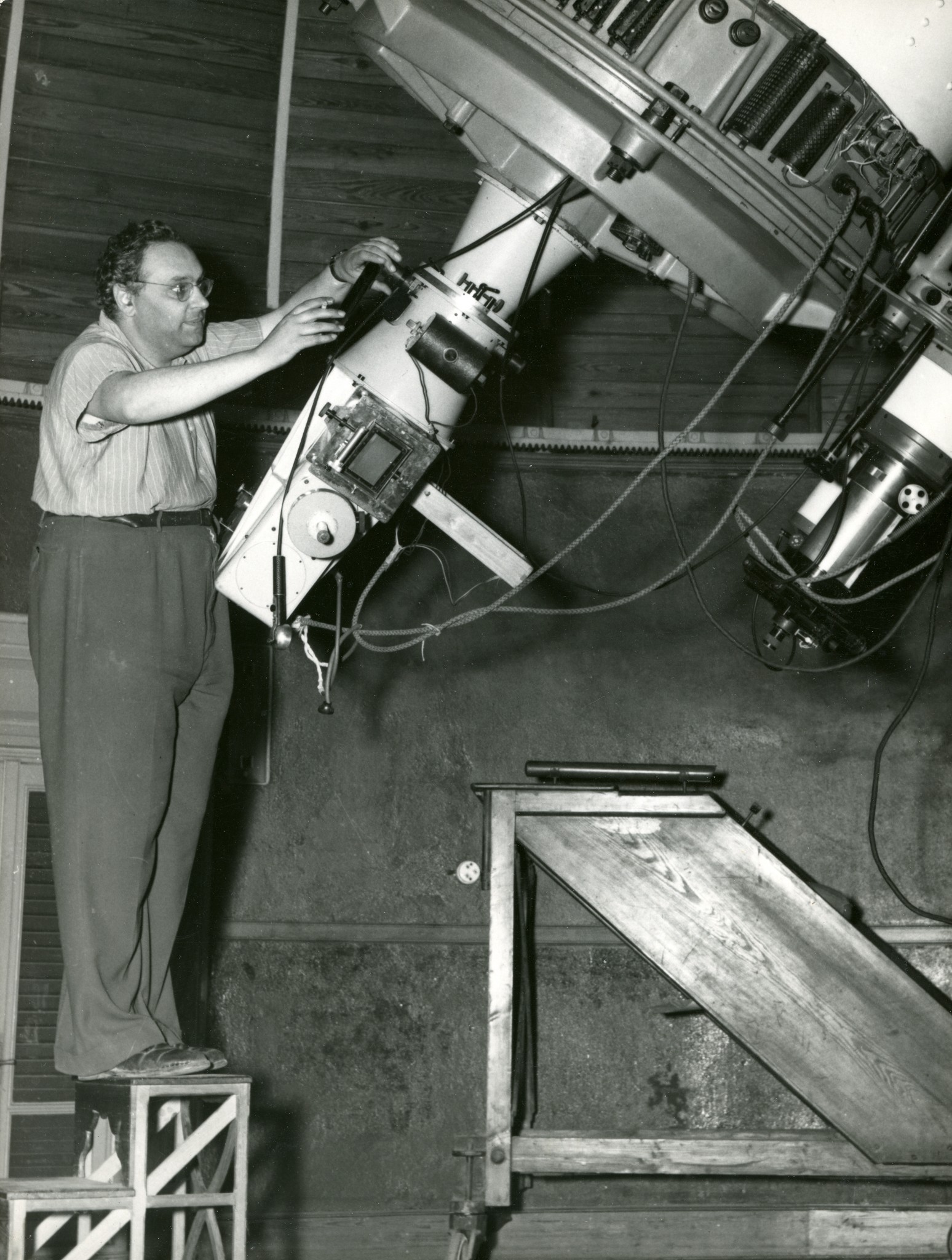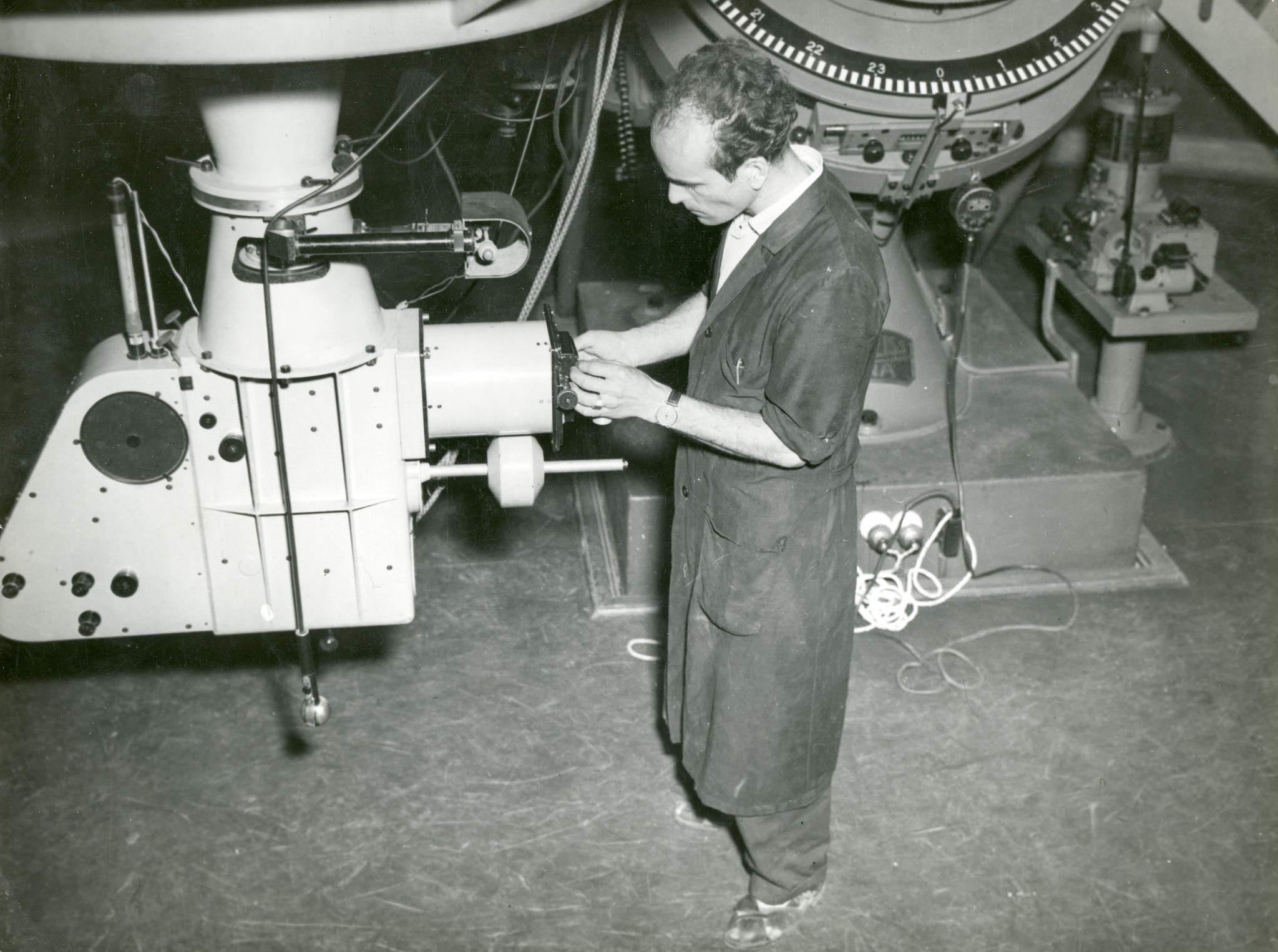 Camillo Emilio Krüger lavora allo spettrografo del riflettore Zeiss di Merate.