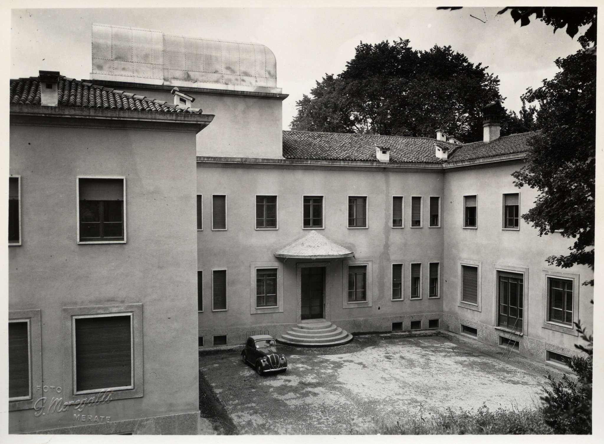 Il nuovo edificio dell'Osservatorio di Merate, inaugurato nel 1951: al suo interno vennero trasferiti gli uffici e i laboratori, mentre l'edificio della vecchia Villa San Rocco fu destinato alle abitazioni degli astronomi.