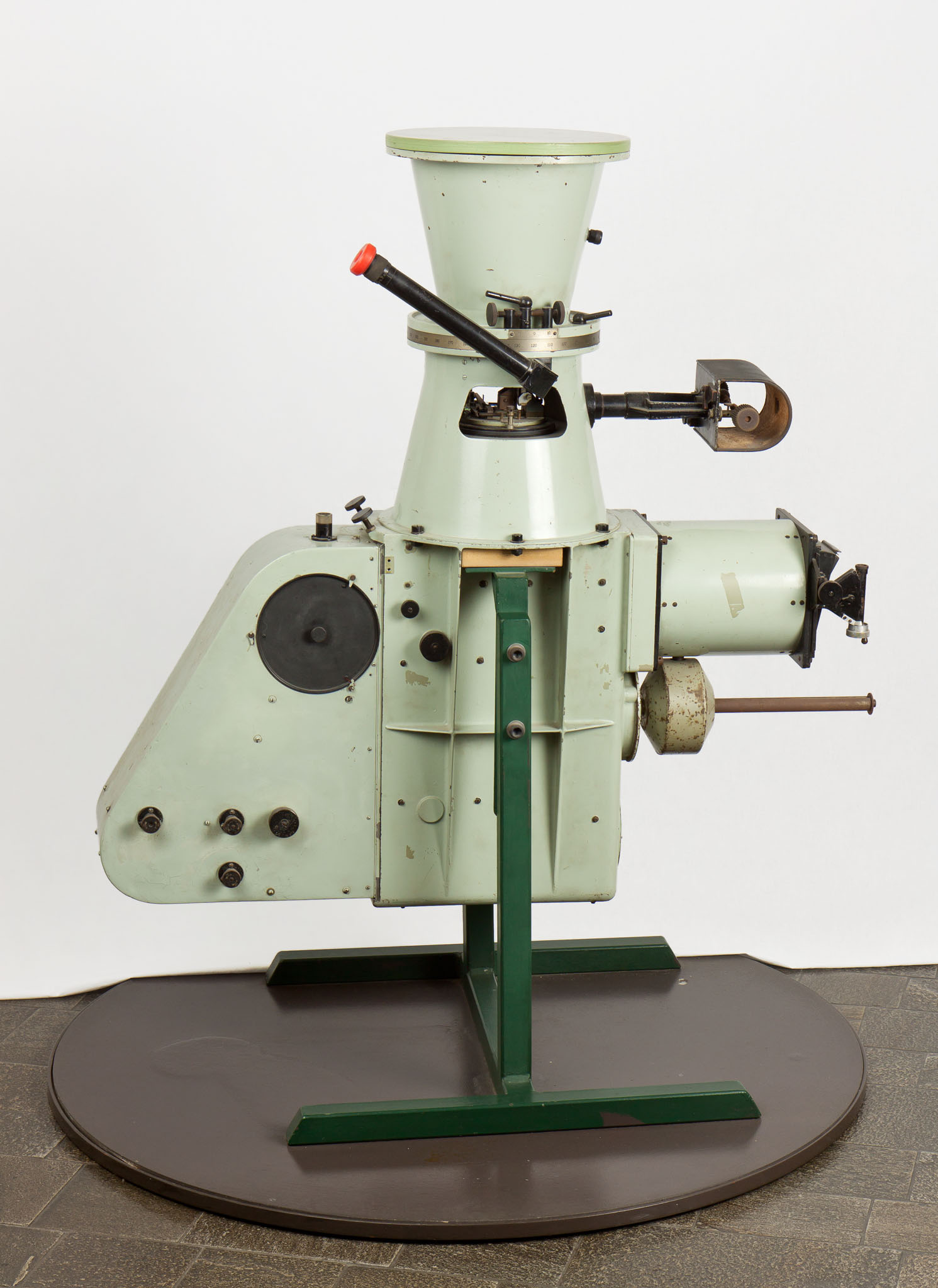 Lo strumento dei passaggi Askania AP 100 installato in uno dei cupolini della sede di Merate. Lo strumento, acquistato nel 1955, era stato installato nella cupola a fiore della sede di Brera e lì usato fino al 1970, quando era stato trasferito a Merate.