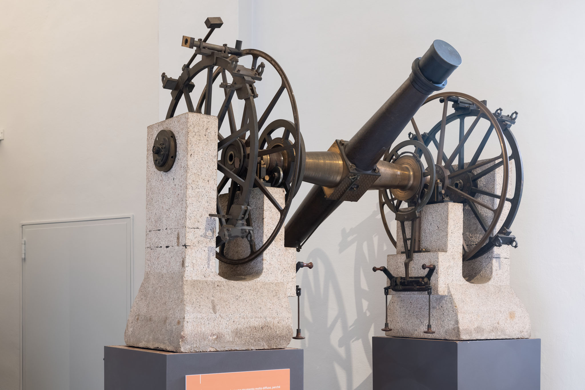 Fotografia recente (febbraio 2021) del circolo meridiano di Ertel esposto nella galleria del Museo Astronomico a Brera.