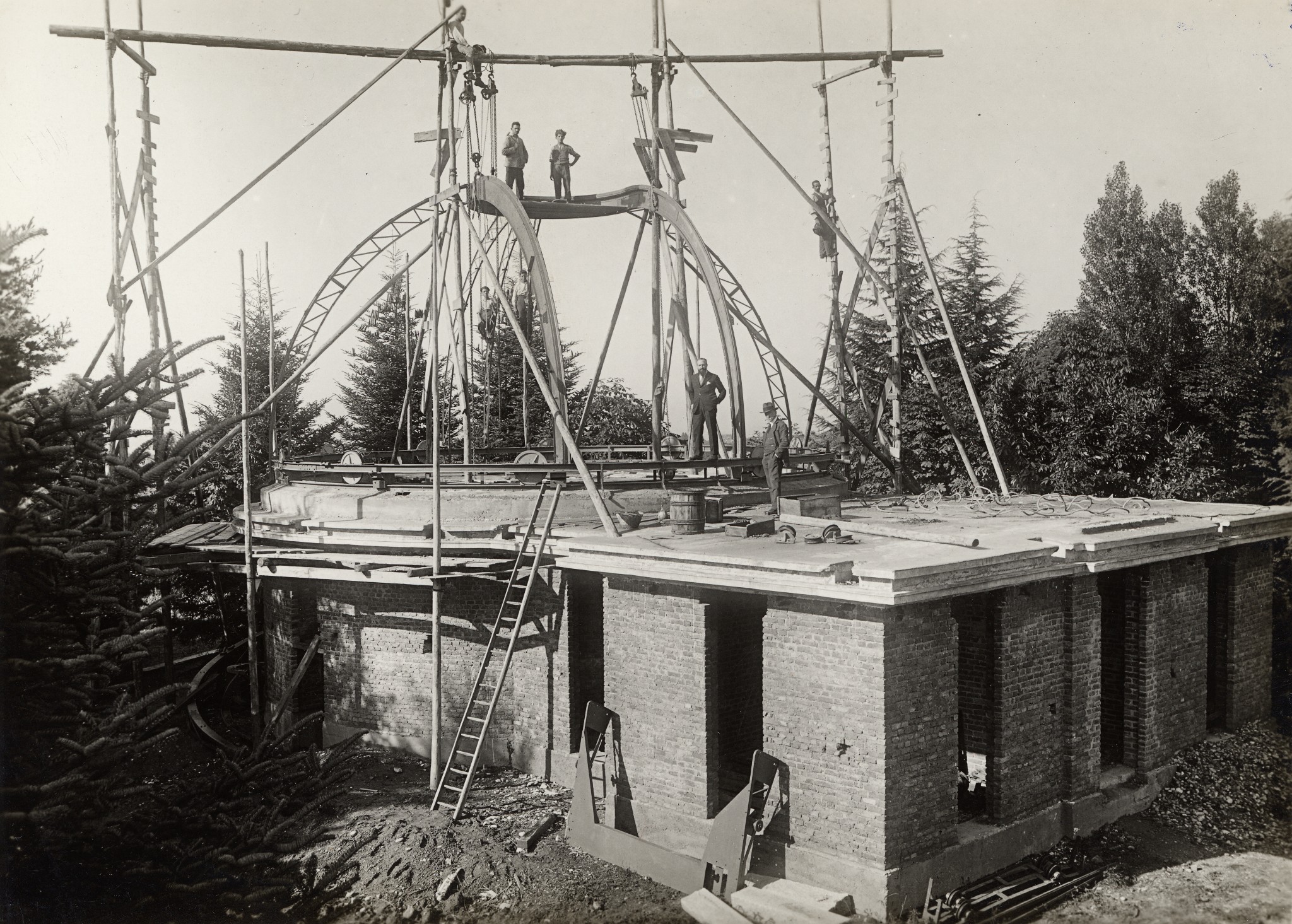 Ultime fasi della costruzione della nuova cupola per il rifrattore Merz-Repsold a Merate (1935).
