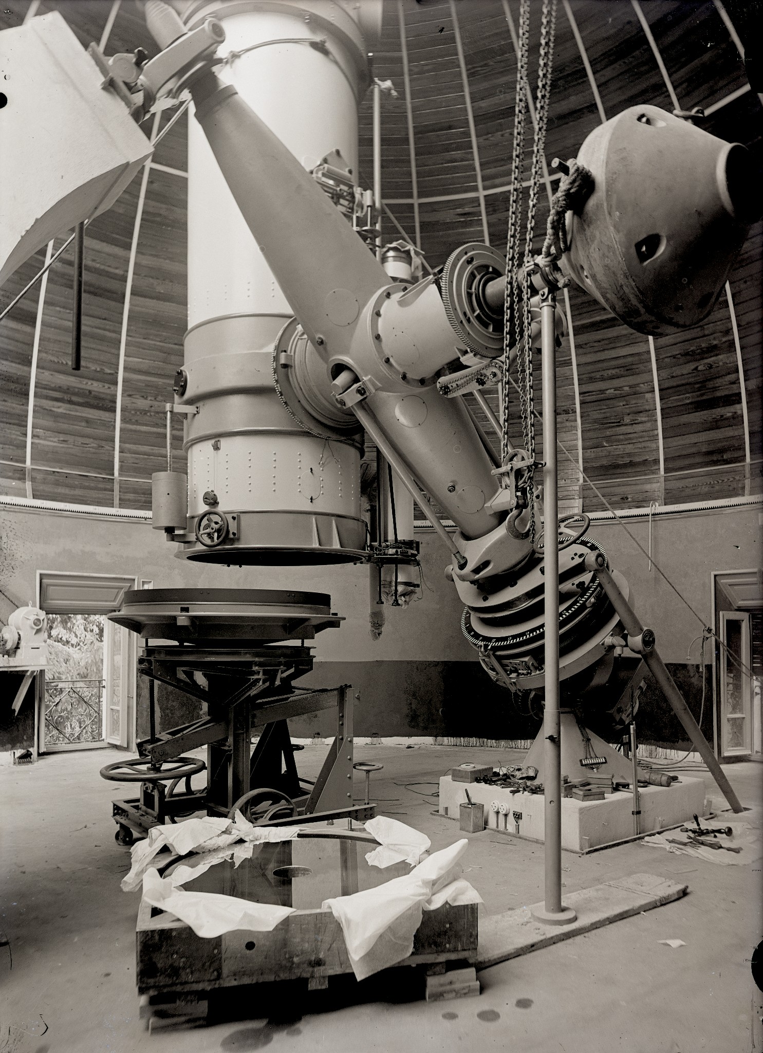 Il telescopio Zeiss in fase di costruzione nelle officine della Zeiss di Jena.