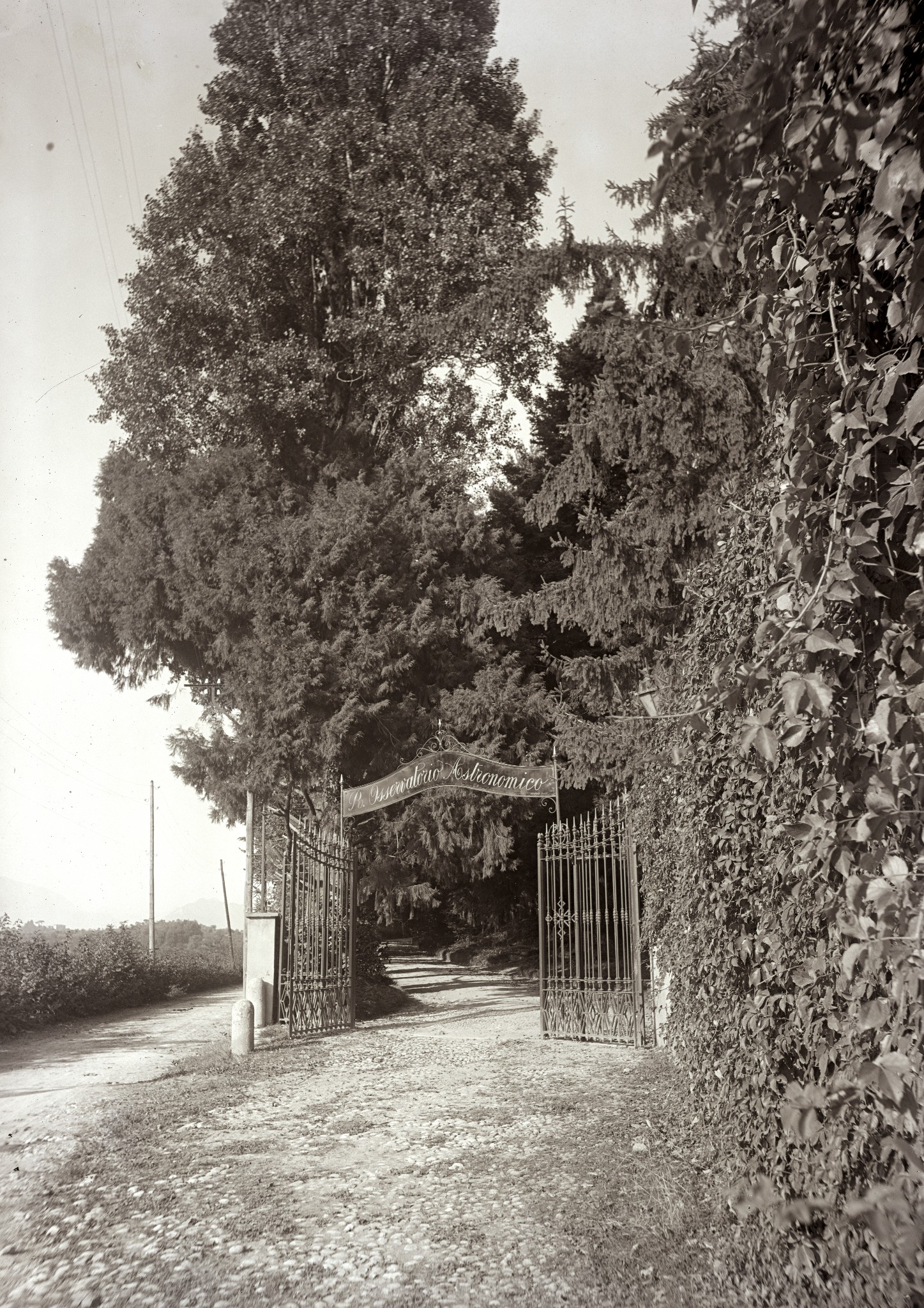 Il cancello di ingresso della sede di Merate dell'Osservatorio.