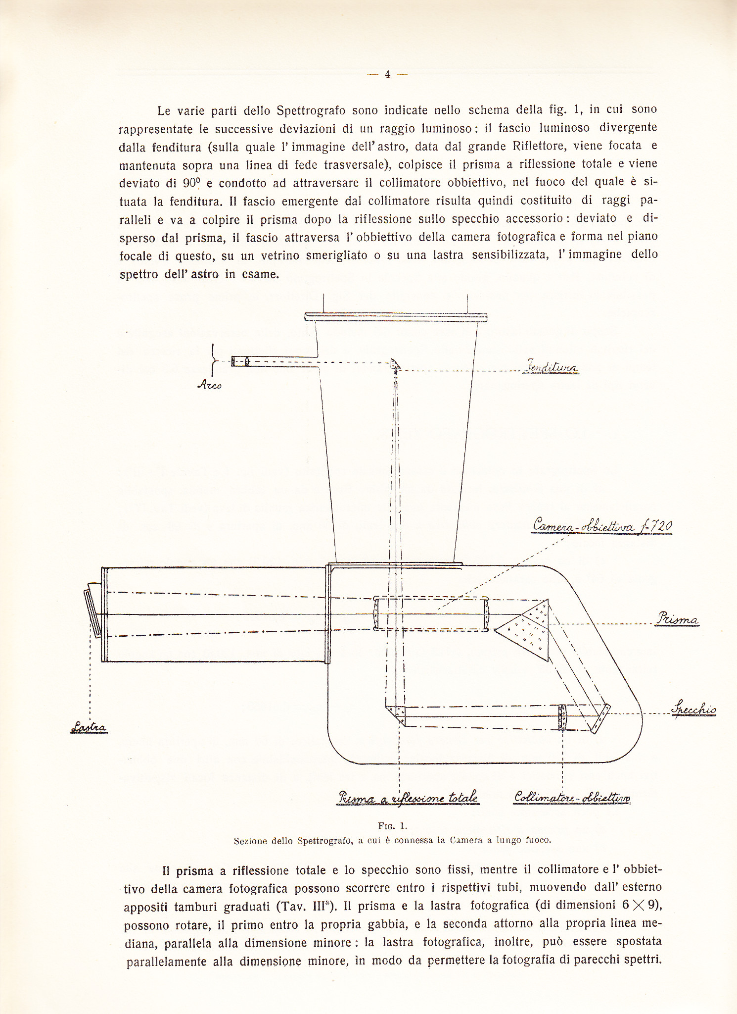 Immagine tratta da: Gino Cecchini, Lo spettrografo applicato al Riflettore "Zeiss" della R. Specola di Merate, Pubblicazioni del R. Osservatorio Astronomico di Merate (Como), succursale del R. Osservatorio di Brera (Milano), N. 2 (1929).