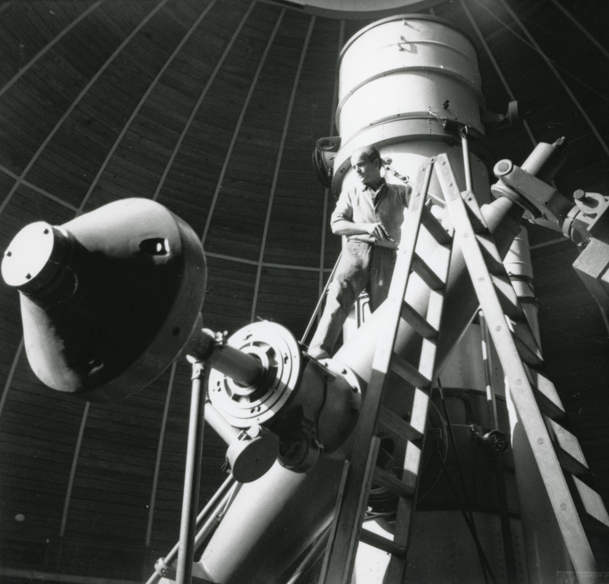 Pietro Broglia di fianco al rifrattore Merz-Repsold nella sua cupola a Merate.