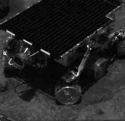 Explanation: The robot rover Sojourner sees Mars from the perspective of a house cat. During the 7 month cruise to Mars aboard the Pathfinder spacecraft, Sojourner measured only seven inches tall in a stowed position but prowling the martian landscape it has stretched to its full height of 1 foot (30 centimeters). In this mosaic of images Sojourner's cameras look back on its mother ship, now the Sagan Memorial Station, which seems to loom above it. The deployment ramp is visible along with deflated airbags, instrumentation masts and tracks left in the martian soil by the robot's six cleated 5-inch aluminum wheels. So far the rover has been directed to analyze soil and the composition of two rocks, Barnacle Bill (seen just to the right of the ramp) and Yogi. Human operators select Sojourner's targets but the robot rover is relied on to navigate to its destination autonomously. Click here to download a movie gif of Sojourner creeping toward Yogi.